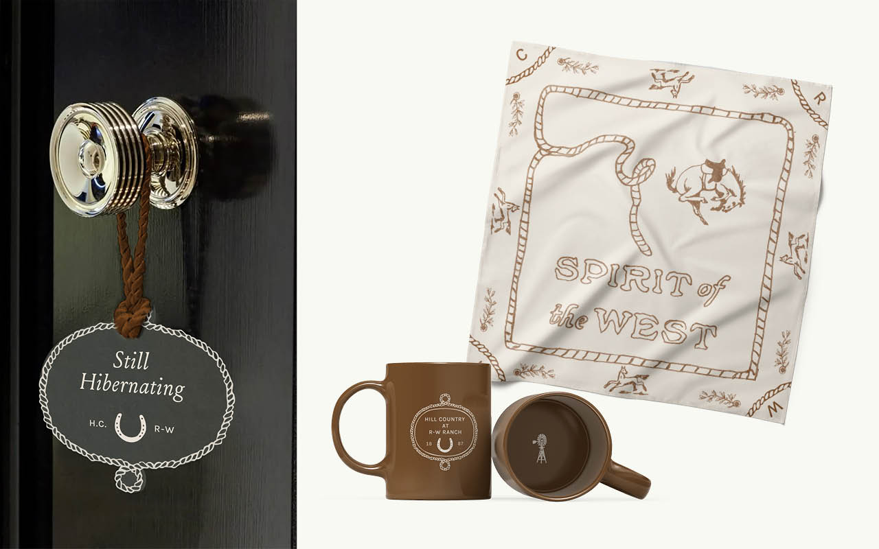 The brand captures a refined yet nostalgic Texas Hill Country aesthetic — warm, rustic, and rooted in Western heritage with a modern, elevated touch. Through earthy tones, handcrafted textures, and playful yet sophisticated details, it evokes the spirit of laid-back luxury and authentic ranch hospitality. warm, natural materials, rich earth tones, and classic heritage patterns.